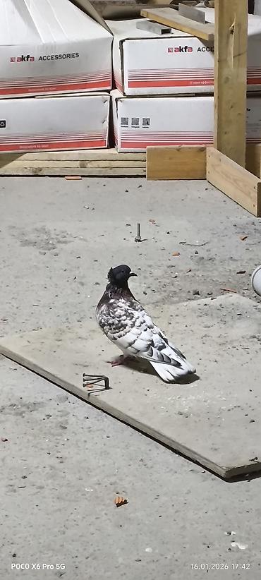 Qəbələ və dekor üçün müxtəlif rəngli göyərçinlər – Növ: ev göyərçinləri (uçan və dekorativ tiplər qarışıq) – Rənglər: ağ, qara, qırmızı-şabalıdı, ala, xallı və mavi ləkəli nümunələr – Say: fot...