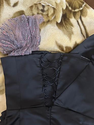 Qara axşam geyimi – zərif, uzun və bədənə oturan siluet. Korseli don Elaqe ucun burdan yazin - Model: birqollu dizayn – sağ tərəf azçiyinli, sol tərəf uzun qol - Kəsim: ön hissədə dizdən yuxarı y...