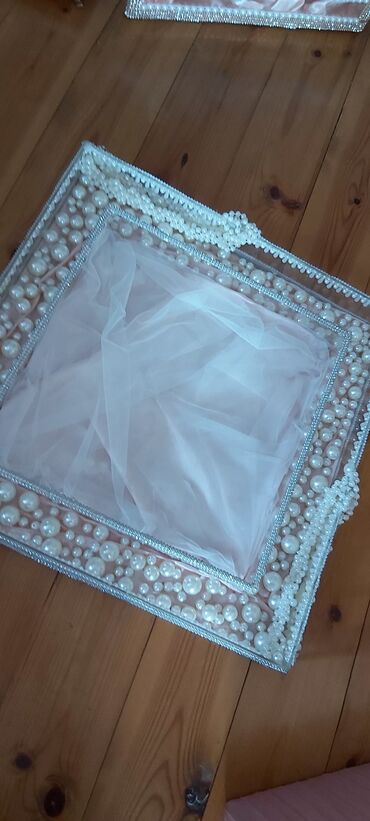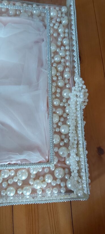 Xonca şirniyyat ücün. Süni güllər və mirvari muncuqlarla bəzədilmiş