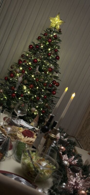 Süslənmiş süni Yeni il şam ağacı - Material: yüksək keyfiyyətli süni