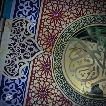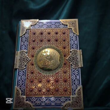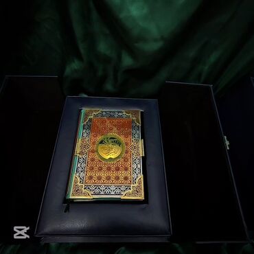 Təkrarolunmaz Lüks Quran-i Kərim - bədii temiz qizil ve gümüş işləməli, qiymətli qaşlarla bezedilib və hədiyyə qutusu ilə Mərkəzdə qabarıq dairəvi medalyon iki terefden temiz 585 qizildan hazırlanıb umumi qizilin cekisi 16qr ve ümumi gümüş 925 çəkisi 550qr Ve çoxsaylı tebii Yaqut qaslarla bəzədilib