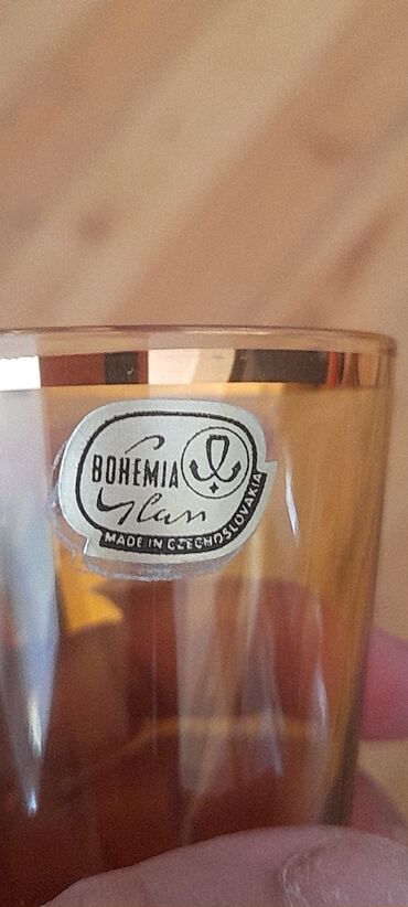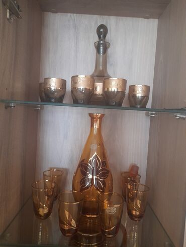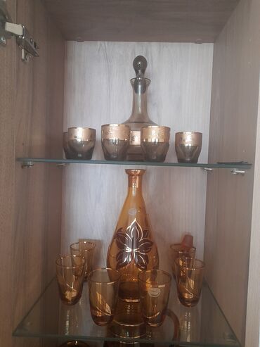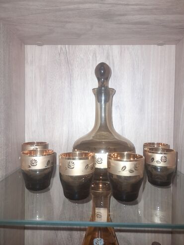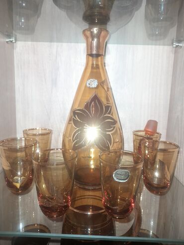 (Viski qabi dest) Bohem kristal şüşədən hazırlanmış, tünd spirtli içkilər üçün dekanter və altı ədəd stəkandan ibarət dəst. Dekanterin tutumu 750 ml-dir. Stəkanların yuxarı kənarı qızılı haşiyə ilə...