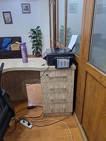 Ofis üçün masa, 5 ədəd. İkisini kompüter stolu kimi də istifadə etmək olar (prosessor üçün əlavə detalı var). Təzə kimidir. Möhkəm materialdan yığılıb. Dolabı və siyirməsi də var. Qiyməti 55 AZN (1...