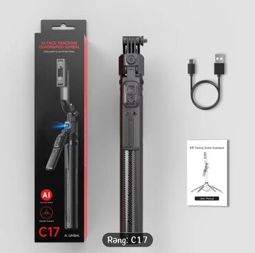 AI Face Tracking C17 – 4‑in‑1 selfi çubuğu, stabilizator və tripod