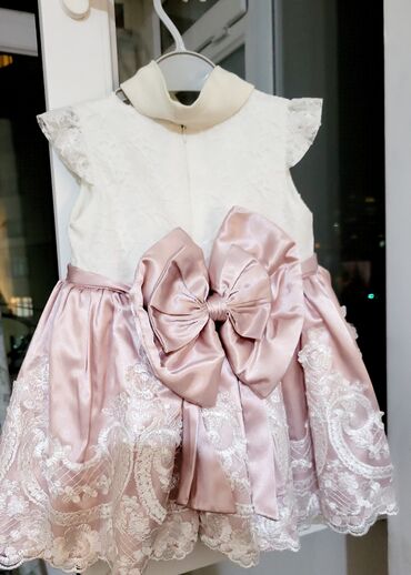 Uşaq üçün bayramlıq/paltar – ERFA, ölçü: 2-3 yaş (98 sm).Arxasında shleyfi var .Naxışları qabariqdi,gozeldi.Baha alınıb.tezeden ferqlenmir - Rəng: açıq krem üst və pudra-çəhrayı ətək. - Üst hissə ...