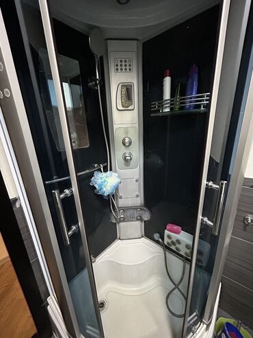 Duş kabini – şüşə və metal karkas - Forma: kvadrat, sürüşkən qapılı. - Karkas: mat qara/alüminium profilli, möhkəm bərkidicilər. - Şüşə: şəffaf temperli şüşə panellər, qalın və təhlükəsiz. - Qapı:...