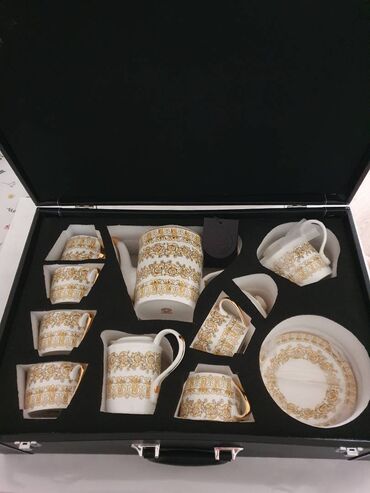 Qədimi üslubda bəzədilmiş porselen çay-servis dəstləri Dəst 1 – krem-qızılı tonlarda: - Böyük çaydan qapaqlı - Süd qabı - Qapaqlı şəkər qabı - 6 ədəd fincan + 6 ədəd nimçə (daxili qızılı) - 6 ədəd...