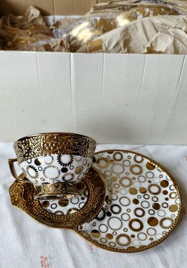 Çay dəsti, rəng - Qızılı, Farfor, 6 nəfərlik