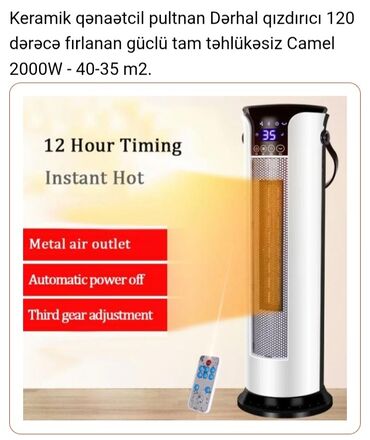 - Qızdırma növü: keramik element (instant hot – sürətli isinmə)