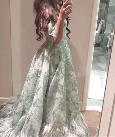 Uzun mavi rəngli ziyafət geyimi. 38,36 razmerdir. 200 m tikilib. Cəmi 3 saatliq geyilib.