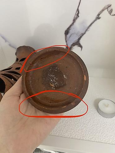 Altlığı sınmışdı, mümkün qədər incə formada təmir olunub. Şəkildə göstərilib.