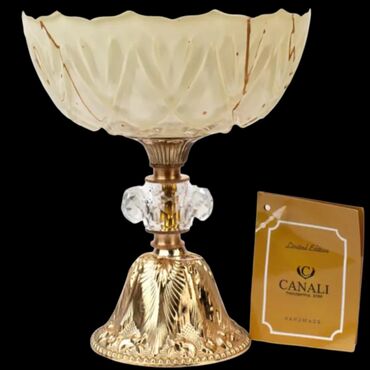 - Dizayn: klassik və zərif ornamentli ayaq, dekorativ qızılı ştrixlər; masaüstü mərkəz dekoru kimi nəzərdə tutulmuş