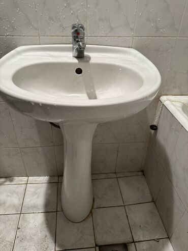 Ağ rəngli keramika materialından hazırlanmış, ayaqlı lavabo. Bu lavabo