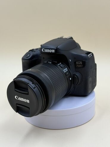 Paketdə görünənlər: EOS 750D korpusu, EF‑S 18‑55mm IS STM obyektivi, obyektiv qapaqları.