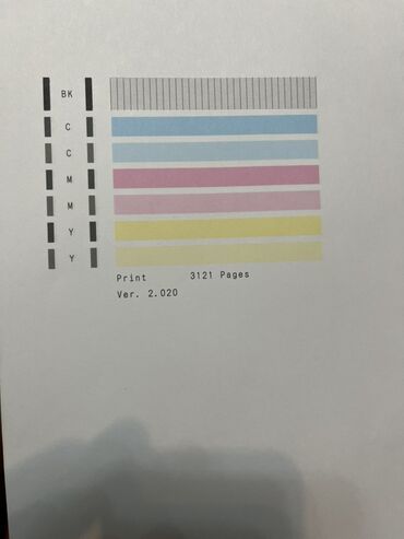 - Çap: rəngli və qara‑ağ; nozzle yoxlama səhifəsi nümunəsi fotoda
