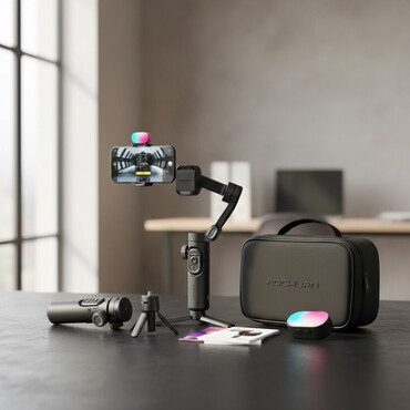 Peşəkar 3-oxlu kamera stabilizatoru (gimbal) - Foto/videoçular üçün hamar və titrəməsiz çəkiliş imkanı - Tənzimlənən sürüşmə lövhəsi: balanslama üçün ölçü şkalası ilə - Güclü mühərriklər və 3 ox ü...