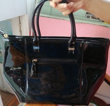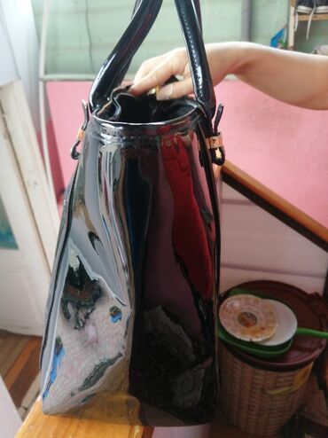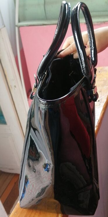 BIR GUNLUK BOYUK ENDIRIM 180 manat - Material: Authentic Italian Leather (orijinal italyan dərisi, iç etiketdə qeyd olunub) - Rəng: qara, laklı effektli - Faktura: timsah naxışlı (croc-embossed) - ...