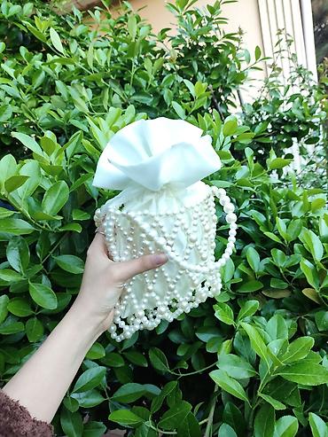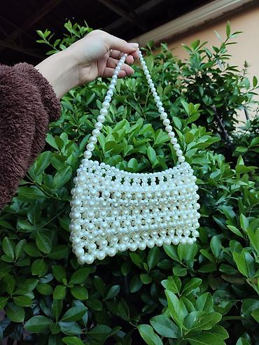 - Material: parlaq dekorativ “inci” muncuqlar, iç hissədə parça/astarlı bölmə
