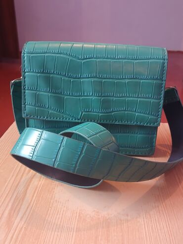 Yaşıl rəngdə, yumşaq materialdan hazırlanmış, dəbli çiyin çantası