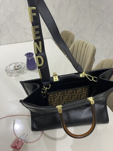 Fendi Roma çanta - Material: tünd rəngli denim/parça üstlük, dəri detallarla