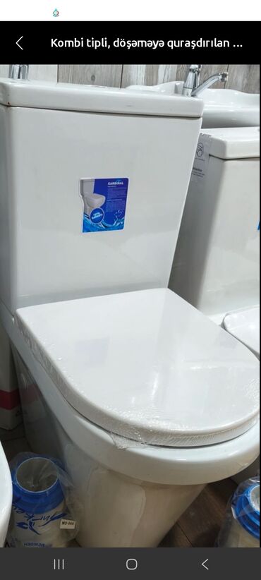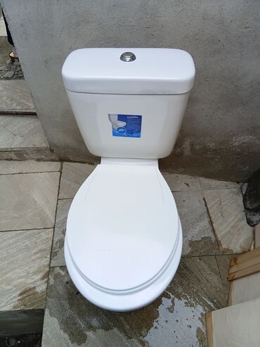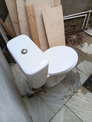 Bej rəngli unitaz dəsti, müasir dizaynlı və quraşdırılması asan. Su