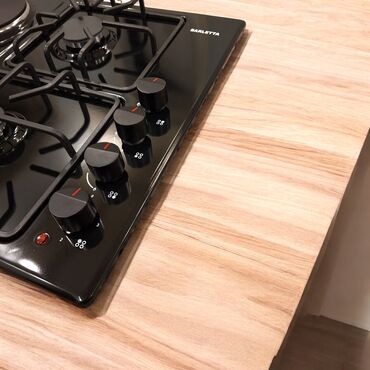 ALEV quraşdırılan qaz paneli - 3 qaz ocağı + 1 elektrikli göz - Sağda mexaniki idarə paneli: 4 ədəd fırlanan düymə, alov tənzimlənməsi -ruçkaları istiliye davamli metal yanmaz erimez - reşotkala...