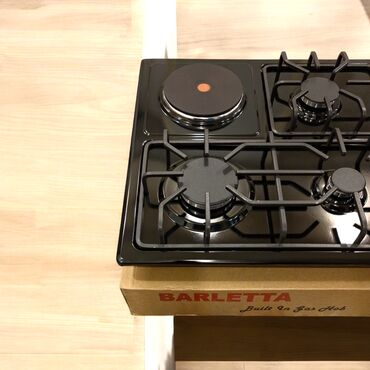 EZEL quraşdırılan qarışıq soba paneli - Yanacaq növü: 3 qaz ocağı + 1 elektrikli disklik (solda) - İdarəetmə: sağ zolaqda 4 ədəd fırlanan mexaniki düymə - Alov mənbələri: fərqli ölçülü üç qaz gözü...