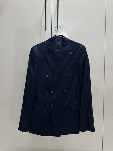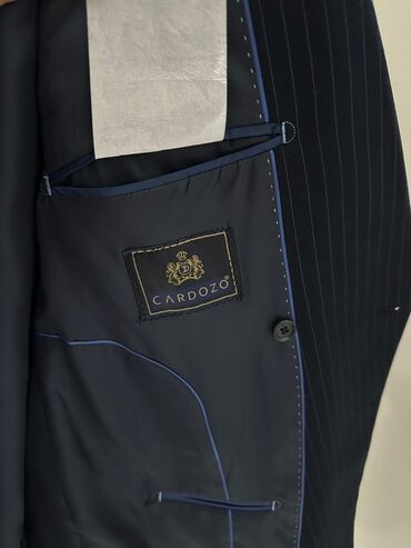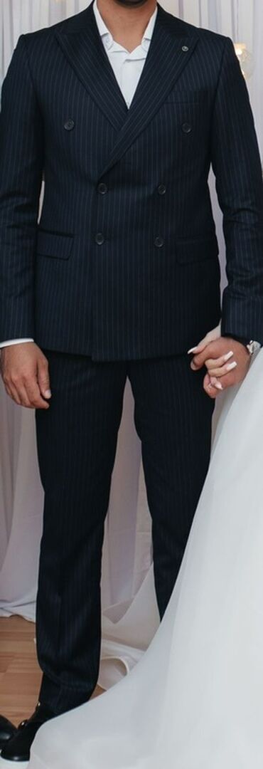 Dəbdəbəli, zərif görünüş istəyənlər üçün klassik pinstripe dəst. Brend etiket və daxili tikiliş detalları şəkillərdə mövcuddur.