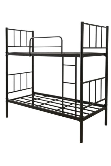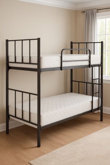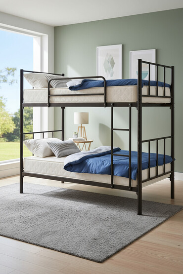 Metal konstruksiyalı, qara rəngli ikimərtəbəli çarpayı yataqxanalar, hostellər və ya kiçik yaşayış sahələri üçün praktiki həlldir. Yuxarı çarpayıda təhlükəsizlik üçün qoruyucu barmaqlıq, hər iki ça...