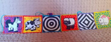Düz parça deyil, toxunanda fərqlilikləri hiss etmək olur. Xışıltılı səslər də çıxarır, hətta yeri var, basanda fit səsi çıxarır. Uşaq özünə güzgüdə baxa bilir. İnkişaf üçün çox gözəl vasitədir. Çarpayı kənarı və ya digər uyğun yerlərə asmaq olur. Son qiymət 12 manat.