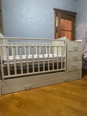 Uşaq beşiyi – COOL BABY markası Demək olar ki, işlənməyib, təptəzə qalıbdır. 270 manata alınmışdır. Xüsusiyyətlər: elektriklə yellənir, bir neçə yellənmə rejimi var. həmçinin uşağın yatması üçün yu...