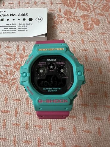 Dəst tərkibi: saat, orijinal altıbucaqlı metal qutu və karton qablaşdırma, istifadəçi kitabçası (Module 3465), zəmanət kartı. Retro rəng palitrası ilə limit xarakterli DW‑5900DN seriyası.