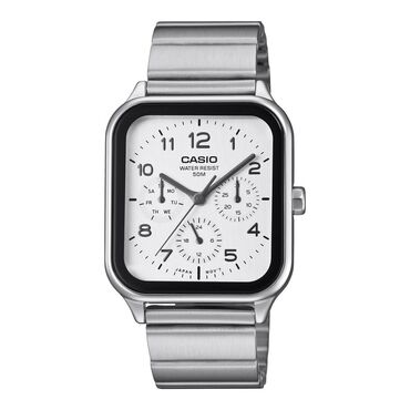 Casio MTP-1100 kişi saatı - Korpus: kvadratvari (yumru bucaqlı) dizayn - Rəng: gümüşü - Siferblat: gümüş ton, minimalist indekslər, 3 əqrəb - Tarix göstəricisi: siferblatın sağ tərəfində (26 pənc...