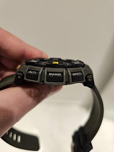 CASIO Pro Trek GPS ağıllı saat wsd f 20 - Model: Casio Pro Trek (GLOBAL POSITIONING SYSTEM yazılı bezele sahibdir) - Rəng: qara, narıncı vurğular - Sensorlar və funksiyalar: barometr (hPa), rütubət...