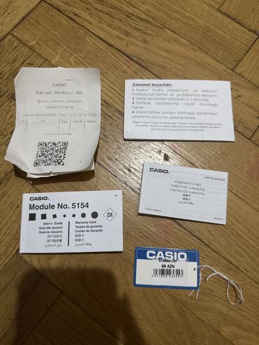 Casio saati 69 azn alinib ceki, zəmanəti, karobkasi hər seyi var çox az istifadə olunub