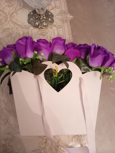 YeniÇantada süni gül buketi satirlir el işidir hecbir problemi yoxdur. Şekildeki kimidir yaşil six yarpaqlidir. Catasi acıq cehrayi rengdir.