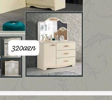 Güzgülü toxunma masası/dresser dəstləri - 3 model: açıq ağac tonlu, tünd qəhvəyi və krem rəngli - Hər birində böyük kvadrat güzgü - Alt hissədə geniş saxlama bölmələri: - Açıq ağac: 1 qapalı böl...