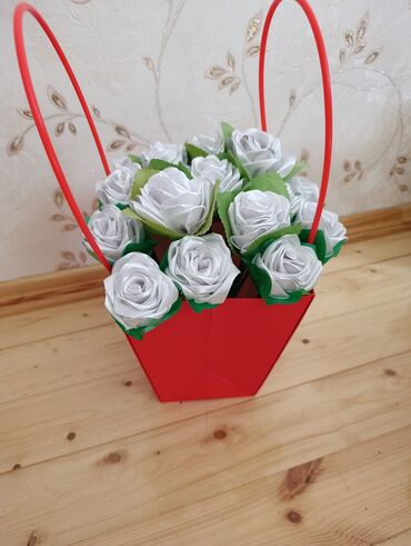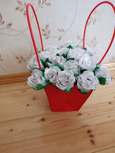 Ağ rəngli ipək lentlərdən hazırlanmış qızılgüllər.. 1 ədədi 1 manat.. buket şəklində də istəyə görə hazırlanır.. hər rəngdə sifariş verə bilərsiniz.. Dekorativ məqsədlər üçün idealdır və hər han...