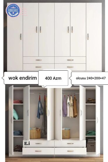 ŞOK ENDİRİM💥 BÜTÜN 2-3-4 QAPILI DOLABLARA 40% ENDİRİM.PAYİZ QIŞ KAMPANİYASİ İL SONUNA QƏDƏR DAVAM EDECEK.KEYFİYYETLİ MATERİAL,MÜKEMMEL İŞÇİLİK QARANTİDİR. 1QAPILI 80₼ 2 QAPILI 100₼ 3QAPILI 130₼ 4QA...
