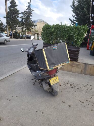 Qeyd: Şəkillərdə göründüyü kimi skuter üzərində kuryer qutusu artıq quraşdırılıb, gündəlik istifadəyə uyğundur.