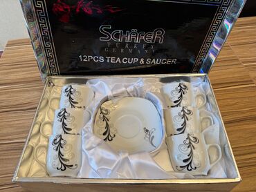 Təzə kofe və çay dəstləri. 6 fincan+ 6 nəlbəki + 1 konfet qabı. 12 manat.