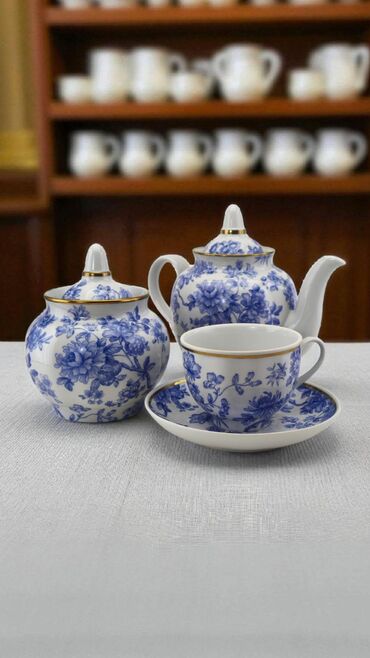 Çay dəsti, rəng - Göy, 6 nəfərlik, Rusiya