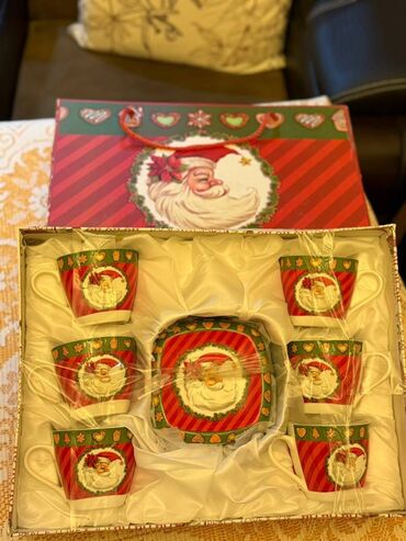 Santa Claus temalı rəngarəng Yeni İl çay dəsti — bayram süfrəsinə xüsusi ab-hava qatır. Dəst tamamilə yenidir, yalnız qutunun üzərində kiçik bir dəlik var, buna görə qiymət cəmisi 30 AZN.