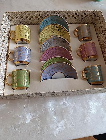 Kofe dəsti – “Made in China” Sovet dövründən qalma kofe dəsti ,təmiz Çin malıdir . İşlənməyib.Tək problem Bir fincanın qulpu qırılîb.