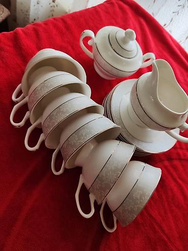 Porselen süfrə dəsti – gül naxışlı, qızılı haşiyəli Tərkib: - 2 ədəd oval servis boşqabı (biri daha iri, biri kiçik) - 1 ədəd iri dərin porselen qazan/kasa qapaqlı, iki qulp ilə - 1 ədəd kiçik süd...Giriş•Qeydiyyat