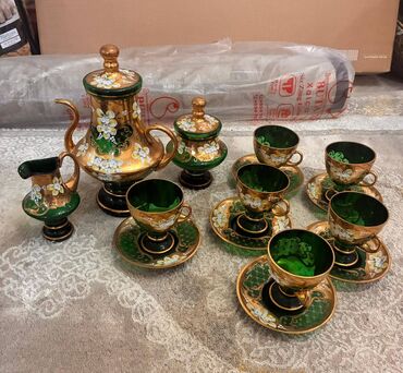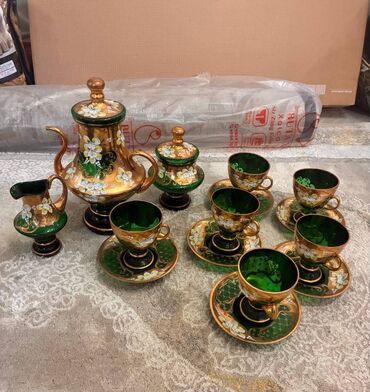QİYMƏT:300 Azn. Qədimi Bogema original çay servizi, 1978ci ilde Çexoslovakiyadan gətizdirilib öz zavodskoy qutusundadir, islənməyib,ideal vəziyyətdədir hər bir predmeti. - Dəst premium hədiyyə qutu...