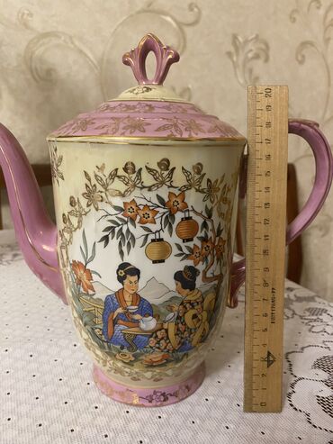 Orijinal farfor çaydan. SSRİ dövründə hazırlanıb. Əl ilə çəkilmiş mavi və yaşıl tonlarda naxışlar, qızılı bəzəklərlə. 1960–1970-ci illərin klassik sovet dizaynı. Vəziyyəti əladır — çat və ya sınıq ...