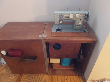 Məhsul: Çayka-III tikiş maşını, şkaf-stol dəsti ilə Xüsusiyyətlər: - Model: ÇАЙКА-III (КЛ. 114-2 seriyası) - Tip: Mexaniki tikiş maşını, ayaq pedalı və əl çarxı ilə idarəetmə - Gövdə: Stolun içəri...