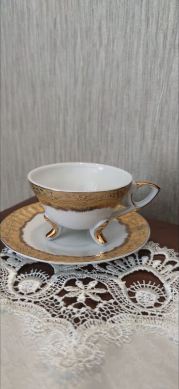 Çay dəsti, rəng - Qızılı, Farfor, 6 nəfərlik, Almaniya