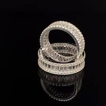 Zərif çoxsıralı üzük - Material: gümüşü rəngli metal ərinti - Dizayn: üçqat halqa formasında; hər sırada tam dairə boyunca parlaq şəffaf daşlar (zirconiya tipli) bərkitmə - Kəsim: yuvarlaq/brillia...